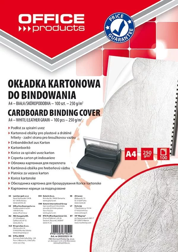 Okładki Do Bindowania Office Products Karton A4 250Gsm Skóropodobne 100Szt. Białe
