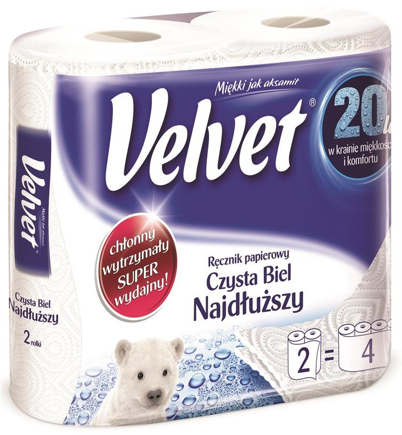 Opinie o Ręczniki W Roli Celulozowe Velvet Najdłuższy 2-Warstwowe 90 Listków 2Szt. Białe