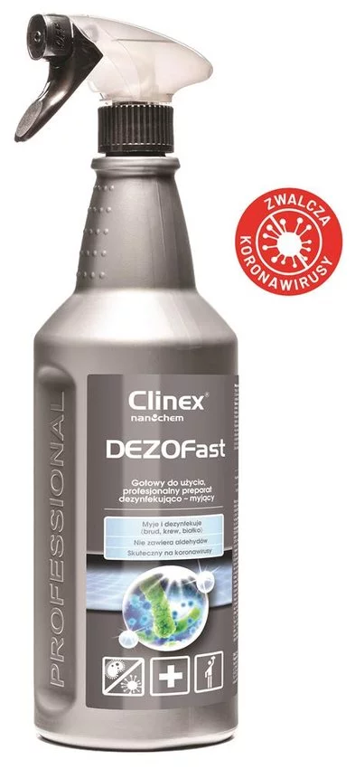 - Profesjonalny preparat dezynfekująco-myjący o działaniu bakteriobójczym, grzybobójczym i wirusobójczym, gotowy do użycia, do powierzchni kontaktujących się z żywnością i w obszarze medycznym, 1000 ml.