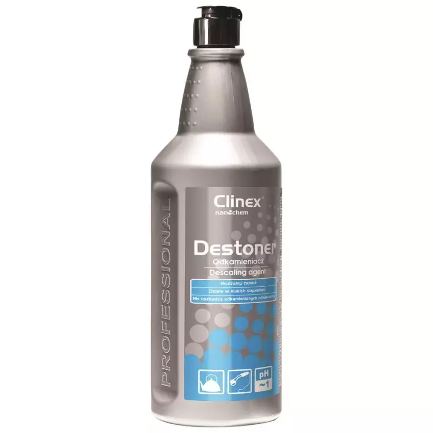 Butelka 1L Clinex Destoner to praktyczne opakowanie, które wystarcza na wiele zastosowań – od regularnego odkamieniania czajników i ekspresów po profilaktyczne stosowanie w zmywarce. Ergonomiczna forma opakowania ułatwia odmierzanie środka i jego bezpieczne przechowywanie w domu lub zapleczu gastronomicznym.