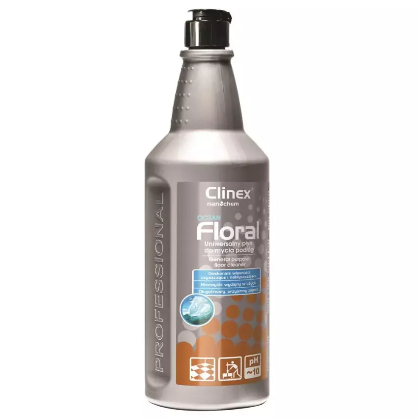 Clinex Floral Ocean 1L w praktycznym opakowaniu umożliwia wygodne dozowanie płynu do wiadra lub zbiornika urządzenia czyszczącego. Produkt przeznaczony jest do bieżącego utrzymania czystości podłóg w mieszkaniach, biurach oraz obiektach usługowych.