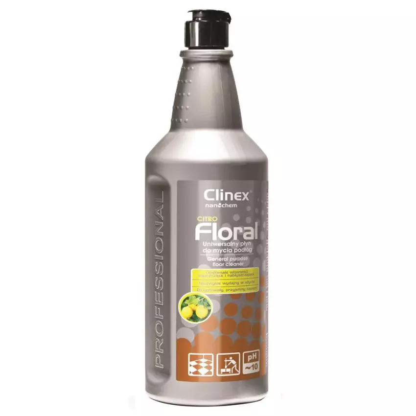Clinex Floral Citro 1L w praktycznym opakowaniu ułatwia codzienne sprzątanie podłóg w domu, biurze lub lokalu usługowym, gwarantując skuteczne mycie i świeży zapach w jednym kroku.