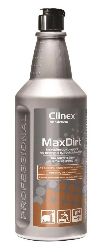 Clinex 4Max Dirt 1L to profesjonalny, mocno skoncentrowany preparat do gruntownego usuwania tłustych i trudnych zabrudzeń z różnego rodzaju powierzchni w obiektach gastronomicznych, przemysłowych i usługowych. Dzięki niskopieniącej formule idealnie współpracuje z maszynami czyszczącymi, jednocześnie skutecznie odtłuszczając posadzki betonowe, PCV, kamień naturalny i sztuczny, kafle oraz elementy metalowe, w tym aluminium i stal nierdzewną. Brak kompozycji zapachowej sprawia, że środek może być bezpiecznie stosowany w miejscach mających kontakt z żywnością, takich jak kuchnie, zakłady przetwórstwa czy hale produkcyjne branży spożywczej. Produkt sprawdzi się zarówno do mycia podłóg, jak i ścian oraz innych zmywalnych powierzchni, zapewniając szybkie i efektywne usuwanie nawet uporczywych zabrudzeń olejowych, smarów czy osadów eksploatacyjnych.