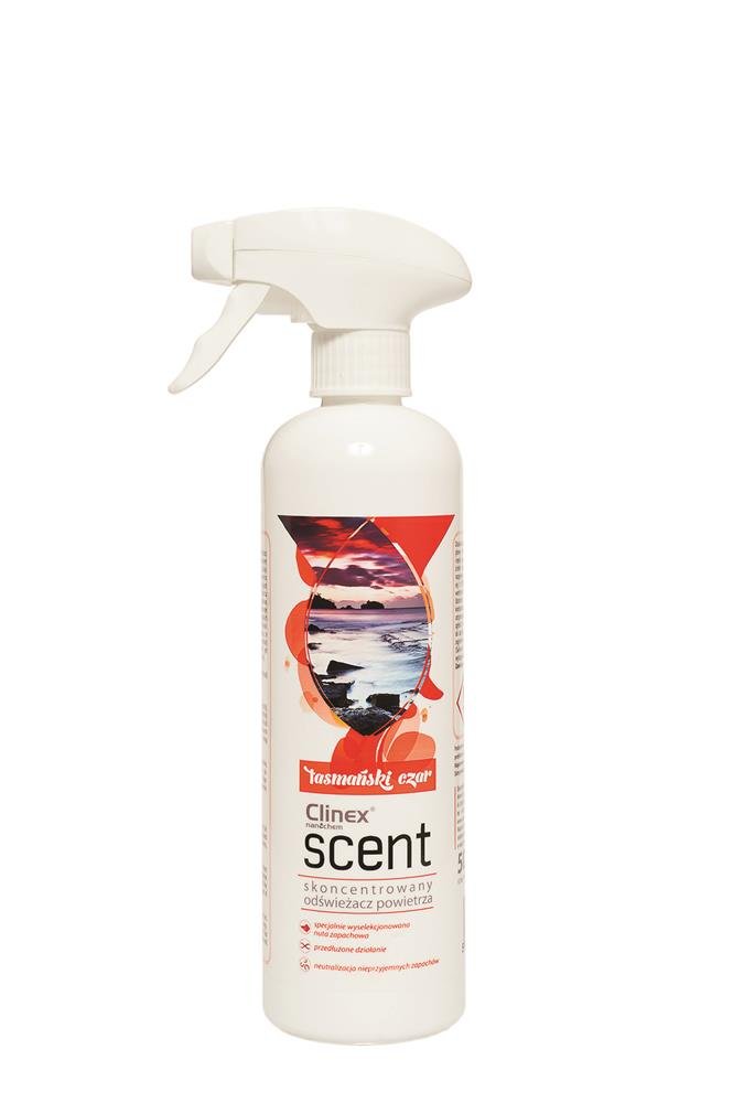 Clinex Scent Tasmański Czar to profesjonalny odświeżacz powietrza w wygodnym sprayu, stworzony z myślą o miejscach, w których świeży zapach i neutralizacja nieprzyjemnych woni mają kluczowe znaczenie. Formuła produktu skutecznie eliminuje uciążliwe aromaty, zamiast tylko je maskować, a wyjątkowa kompozycja zapachowa nadaje pomieszczeniom elegancki, przyjemny charakter. Dzięki zastosowaniu atomizera środek rozprowadzany jest w postaci delikatnej mgiełki, co zapewnia równomierne rozproszenie i długotrwały efekt – nawet do 4 dni po zastosowaniu. Preparat jest bezpieczny dla otoczenia: nie pozostawia śladów na wykładzinach, tapicerce i meblach, dlatego sprawdza się zarówno w biurach, jak i w ogólnodostępnych przestrzeniach, takich jak toalety publiczne czy strefy dla palących. Pojemność 500 ml gwarantuje wydajność, szczególnie istotną w miejscach intensywnie użytkowanych.