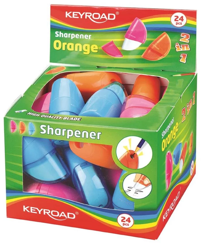 Temperówka Keyroad Orange Plastikowa Pojedyńcza Z Gumką Pakowane Na Displayu Mix Kolorów