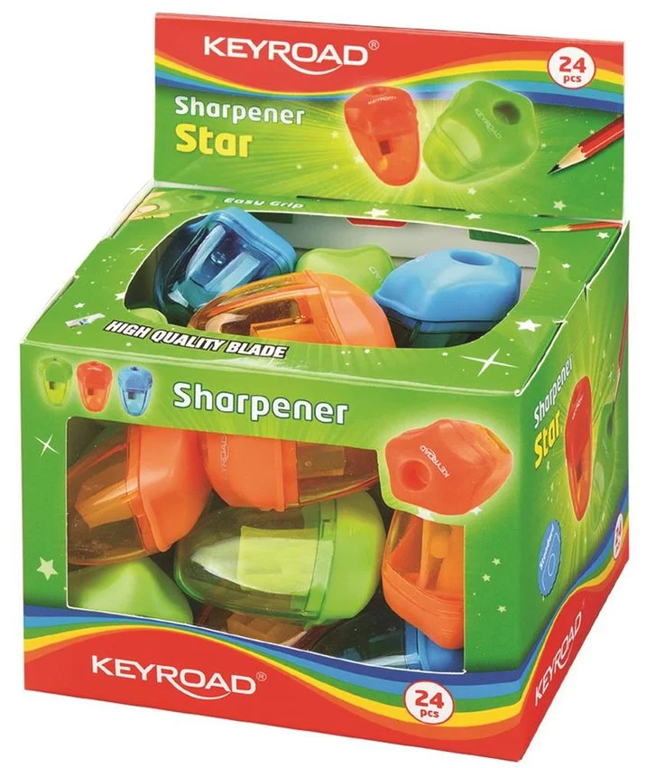 Temperówka Keyroad Star Plastikowa Pojedyńcza Z Pojemnikiem Pakowane Na Displayu Mix Kolorów