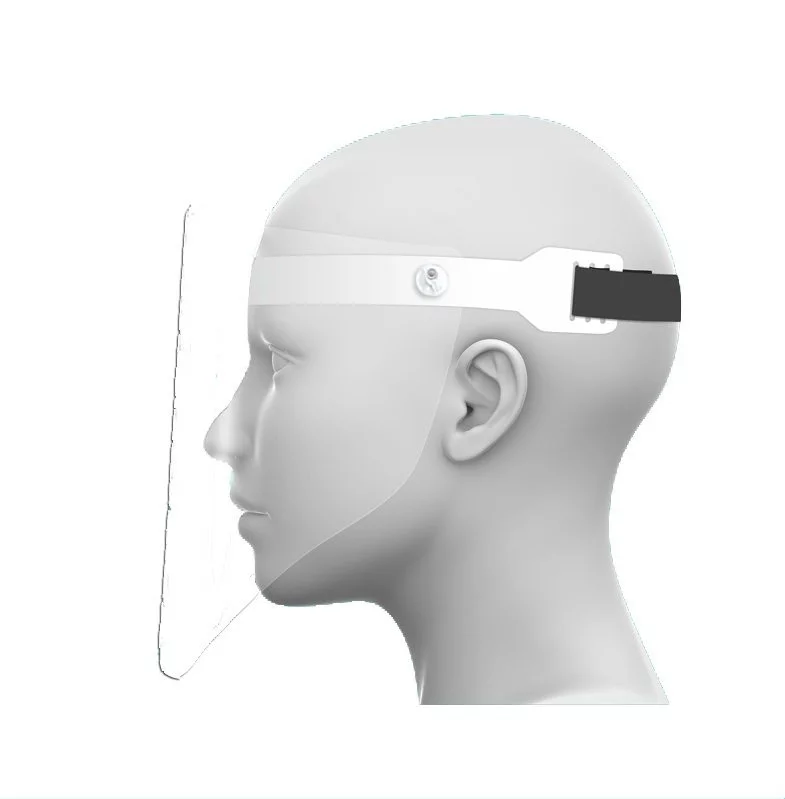 - przyłbica uchylna wielokrotnego użytku wykonana z transparentnego tworzywa sztucznego,
