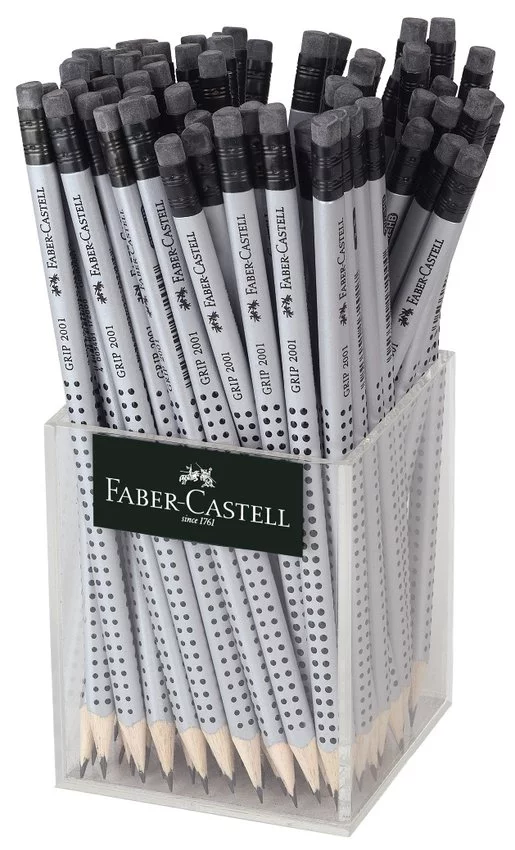 Ołówek Grip 2001 Hb z Gumką Display 72 szt. Srebrny Pojemmik Plexi Faber-Castell
