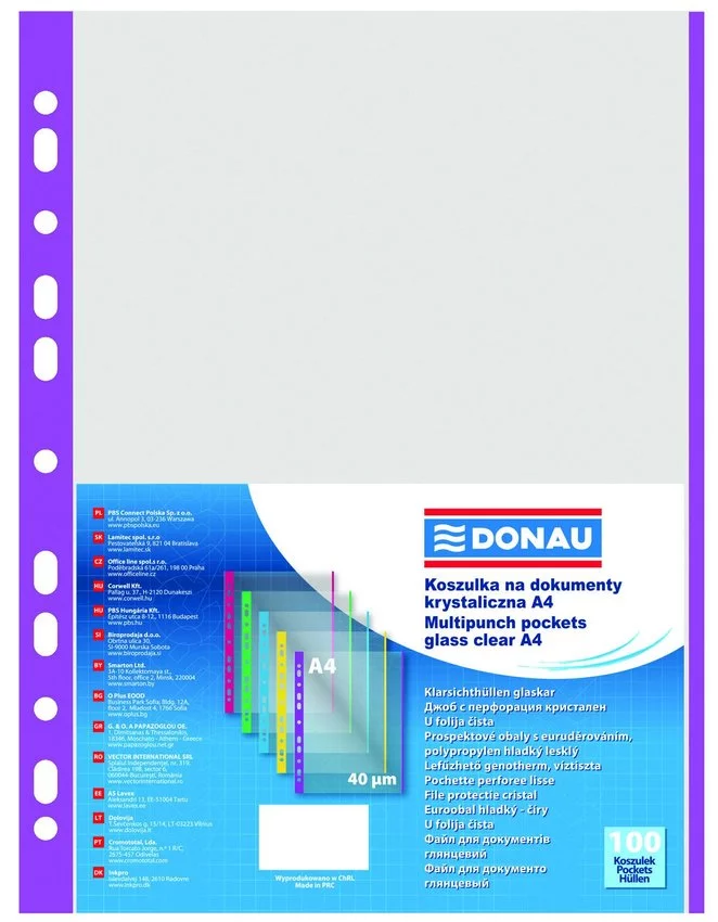 Koszulki Na Dokumenty Krystaliczne A4 Brzeg Fioletowy 40mikr A'100 /Donau