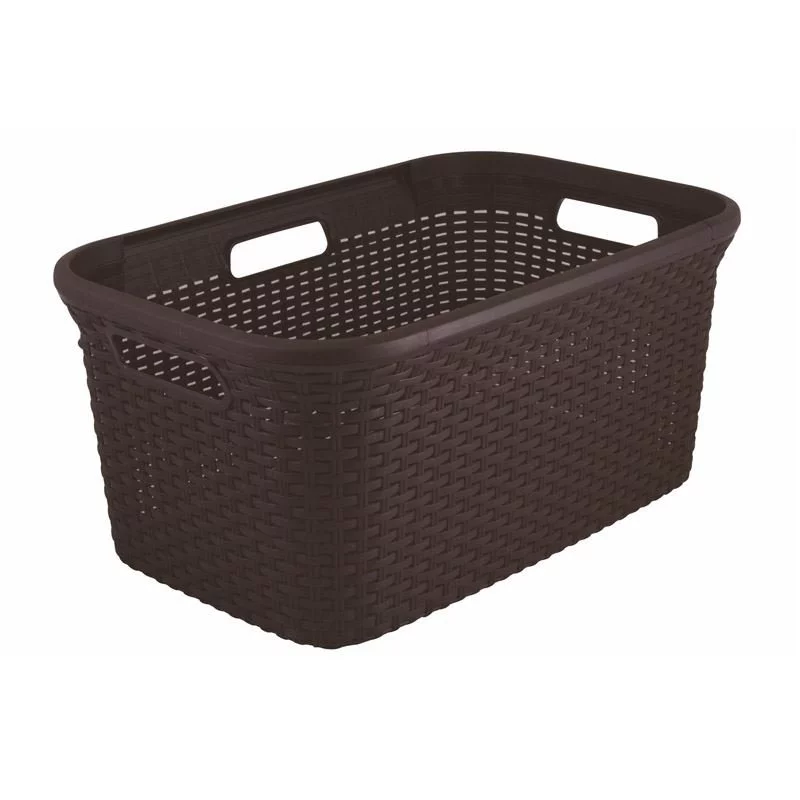 - Kosz do magla Curver My Style 45L w kolorze ciemny brąz, z tworzywa imitującego rattan. Wentylowany, lekki i wytrzymały, z ergonomicznymi uchwytami, idealny do łazienki, pralni i garderoby.