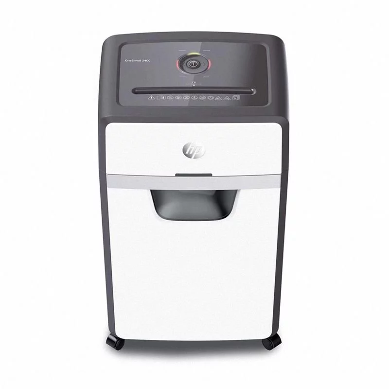 Niszczarka HP OneShred 24CC w eleganckim jasnoszarym kolorze z ciemnymi elementami to idealne rozwiązanie do małego biura lub użytku osobistego. Z łatwością niszczy karty kredytowe, zszywki, spinacze oraz papier. Posiada kółka co ułatwia sprzątanie i transportowanie urządzenia między pomieszczeniami.