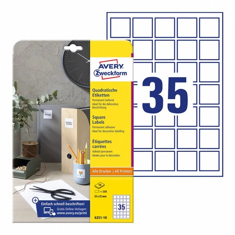 Etykiety Samop. Avery Kwadratowe 35x35 35/A4 Trwałe Białe No.6251-10