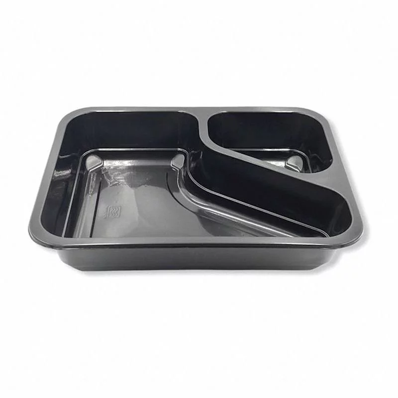 Wysokiej jakości dwu-komorowy pojemnik ( colt), tacka do zgrzewu, czarna, gładka. Główne zastosowanie: catering, diety pudełkowe