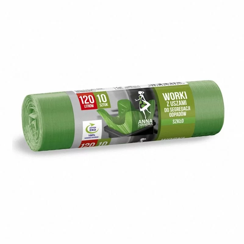 Worki Na Śmieci Z Uszami 120L A'10 Zielone do Segregacji Odpadów Szklanych /Anna Zaradna