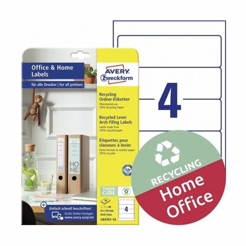Etykiety na Segregatory Recyklingowe Avery Office&Home 61x192 4/A4 A'10 Białe No.LR4761-10