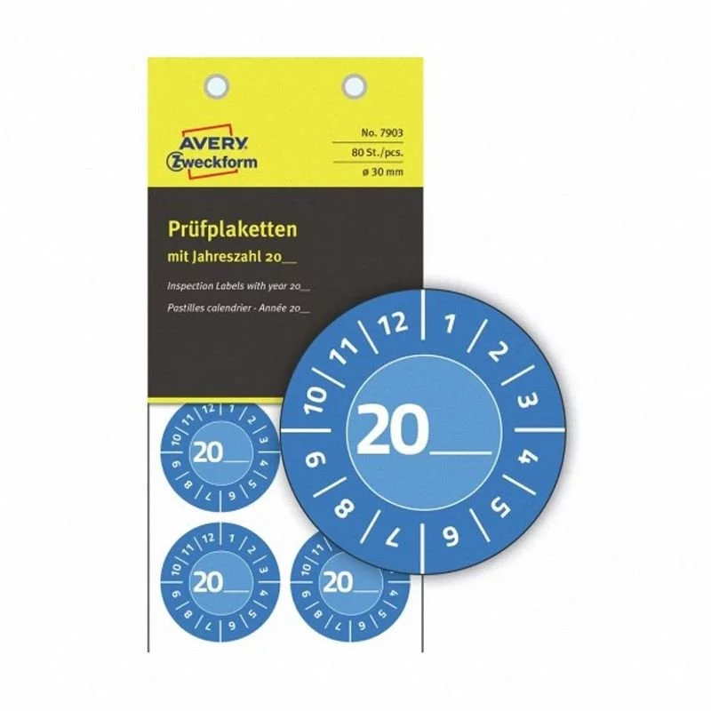 Etykiety Inspekcyjne Vinylowe 20XX Rok do Uzupełnienia Avery śr.30 A'80 Niebieskie No.7903