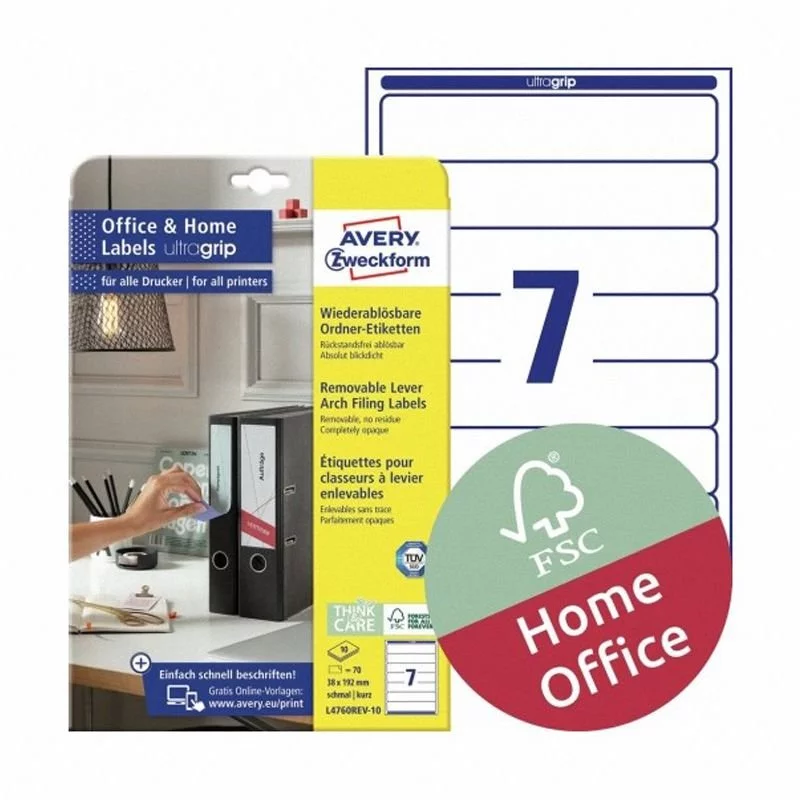 Etykiety na Segregatory Usuwalne Avery Office&Home 38x192 7/A4 A'10 Białe No.L4760REV-10