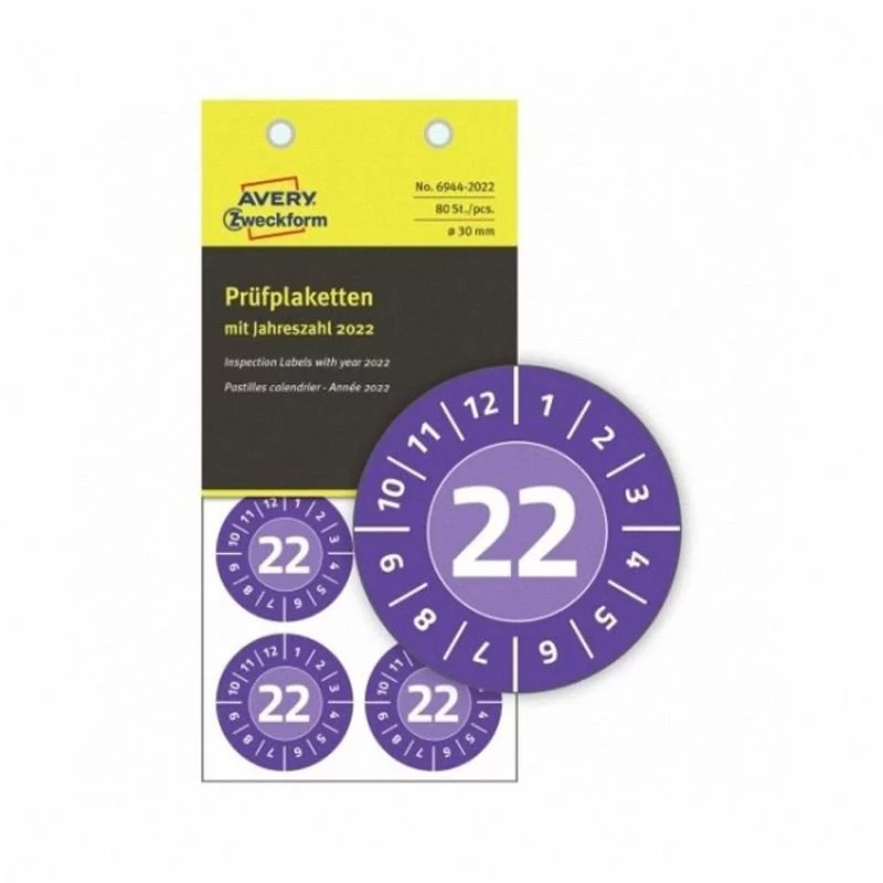 Etykiety Inspekcyjne Vinylowe do Opisu Ręcznego 2022 Avery śr.30 A'80 Fioletowe No.6944-2022