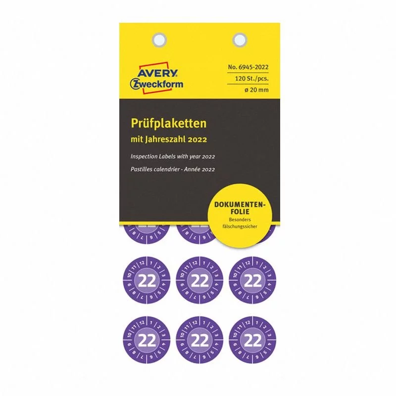 Etykiety Inspekcyjne NoPeel 2022 Avery śr.20 A'120 Fioletowe No.6945-2022