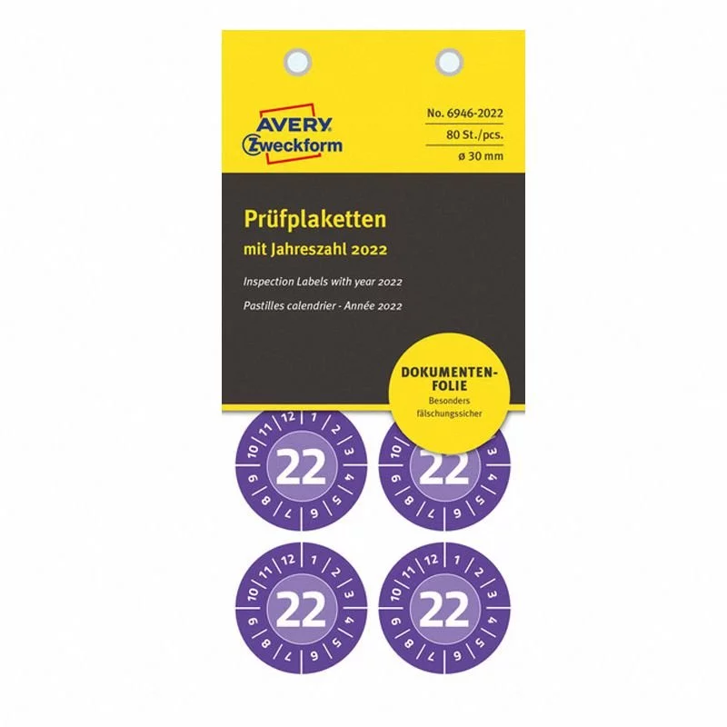 Etykiety Inspekcyjne NoPeel 2022 Avery śr.30 A'80 Fioletowe No.6946-2022