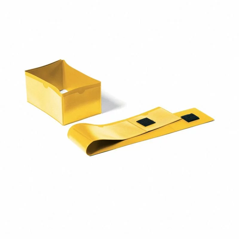Żółta paska z czterema kieszeniami do zamocowania na stopie palety. Łatwe mocowanie do stopy palety poprzez zaczep na rzepy. Możliwość opisania wszystkich czterech boków opaski. Wycięcie na kciuk w przezroczystym okienku ułatwia wysunięcie etykiety. Kolorowa folia tylnej ścianki i przezroczyste okienko wykonane zostały z mocnego i trwałego polipropylenu.