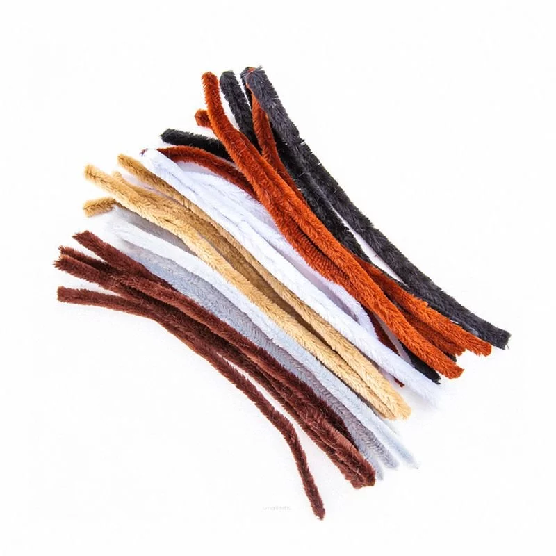 Grube, puszyste druciki kreatywne w naturalnych kolorach przypominających sierść zwierząt. Doskonałe do wszelkiego rodzaju dziecięcej aktywności twórczej. Niezwykle elastyczne, świetnie sprawdzają się podczas tworzenia postaci zwierząt oraz innych kreacji.
