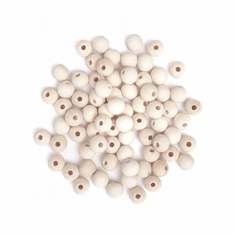 Drewniane koraliki w kształcie kulek wzbogacą biżuterię lub oryginalne dekoracje ze sznurka. Nadają się do malowania i zdobienia, ale równie pięknie prezentują się w naturalnym kolorze.