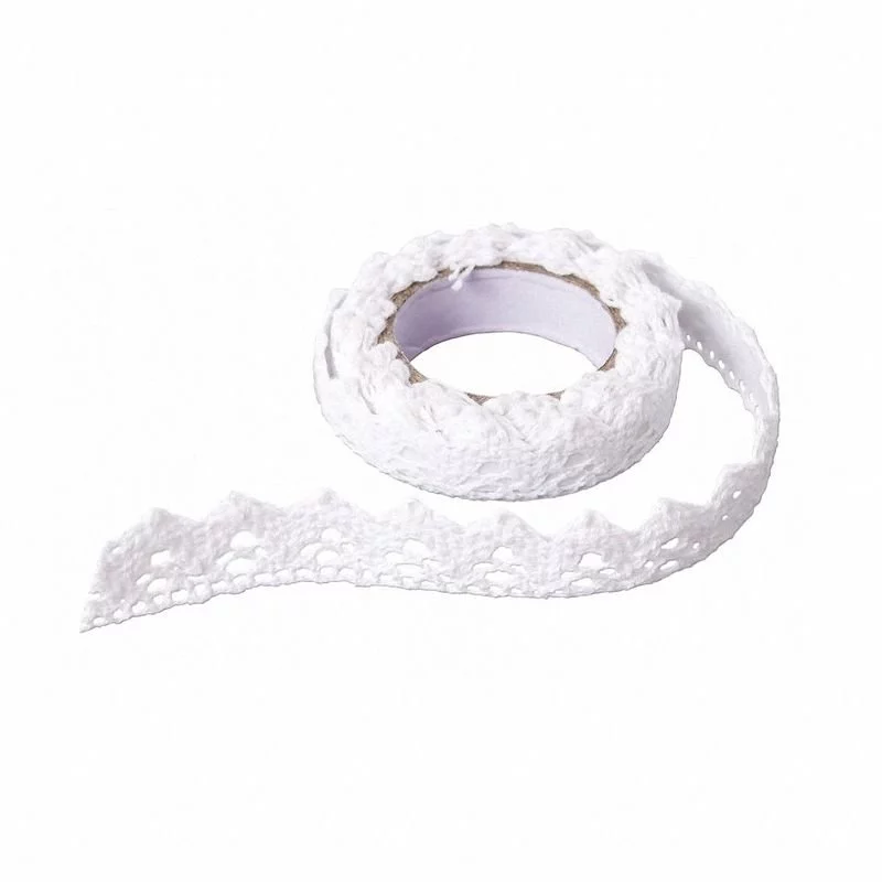Samoprzylepna koronka z bawełny w kolorze białym pojawia się w wielu projektach twórczych. Polecamy szczególnie w scrapbookingu, kartakch, home decor czy mixed mediach.