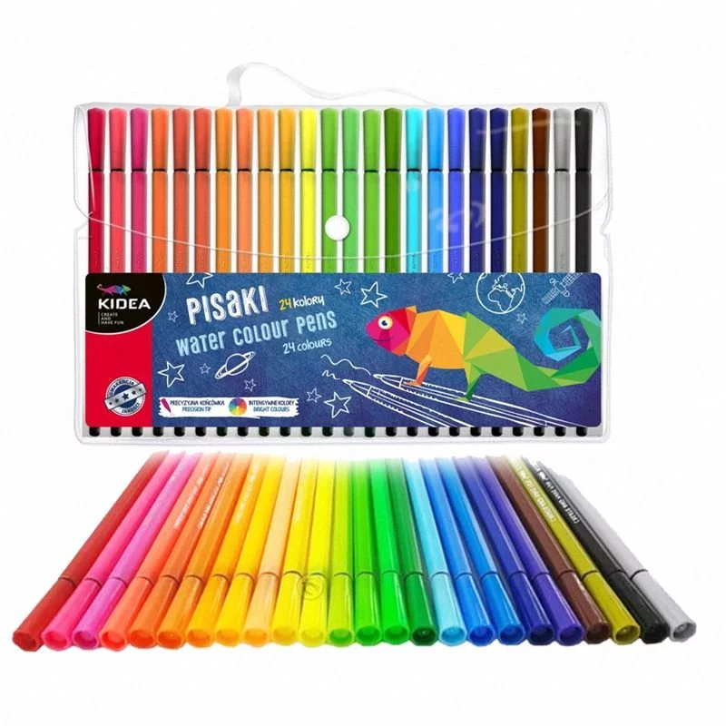 Pisaki doskonale nadają się do kolorowania kolorowanek kreatywnych. Pozwalają łatwo łączyć kolory i tworzyć zupełnie nowe odcienie. Zestaw 24 pisaków w wygodnym etui zapinanym na klips. Intensywne kolory gwarantują wykonanie efektywnych prac. Cienka końcówka pozwala na precyzyjne rysowanie i tworzenie. W zestawie znajduje się zabawna kolorowanka.