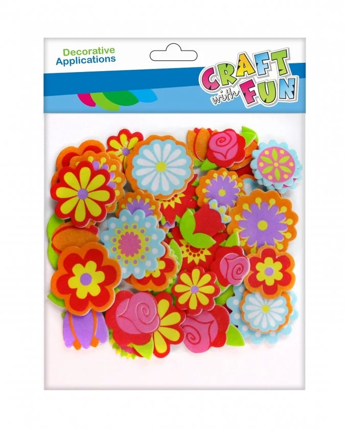 Zalety produktu: idealne do zdobienia kartek okolicznościowych, świetnie sprawdzą się również jako element dekoracyjny do pokoju dziecka czy dodatki do prezentów, elementy posiadają samoprzylepną taśmę. Miękkie piankowe naklejki od CRAFT WITH FUN. Żywe kolory, różnorodne kształty i wzory dają praktycznie nieskończoną ilość możliwości ich stosowania. Używaj tych produktów w połączeniu z innymi akcesoriami oraz kompletami z serii CRAFT WITH FUN! Zawartość opakowania: 48 szt. piankowych naklejek kolorowych kwiatów. Wszystkie elementy wykonane z pianki. Wymiary/waga: wymiary opakowania (dł. x wys. x gł.) [cm]: 12x17x2, waga produktu w opakowaniu [kg]: 0,01 kg. Zestaw przeznaczony dla dzieci w wieku: 3+. Pakowany w woreczek z zawieszką . W inerze po 12 szt. W kartonie zbiorczym po 288 szt.