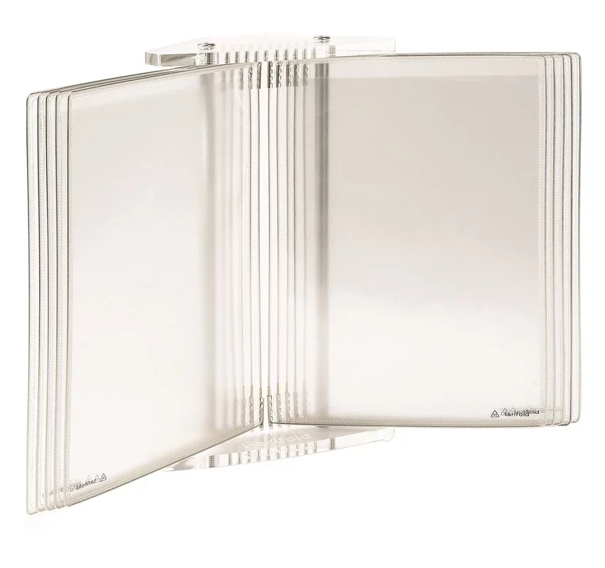 Biurkowy system wraz z panelami prezentacyjnymi formatu A4 z górnym otwarciem wykonane są według opatentowanej technologii firmy Tarifold, panele ze względu na serię produktów są w kolorze krystalicznym. Wszystkie produkty marki Tarifold są wykonane z materiałów najwyższej europejskiej jakości pozwalającej użytkownikowi na korzystanie z produktu bez żadnych awarii, świadczy o tym gwarancja producenta która wynosi do 10 lat! Specjalny stalowy drut powleczony tworzywem powoduje, że panele są z jednej strony bardzo elastyczne a zarazem wytrzymałe na wszelkiego rodzaju zgięcia, z kolei matowy materiał PVC eliminuje refleksy świetlne ułatwiając czytanie nawet przy bezpośrednio padającym świetle. Crystal Line to przede wszystkim kombinacja piękna i funkcjonalności przy pomocy plexiglasu i metalu. Linia idealna dla miejsc prestiżowy tj. hoteli, recepcji, banków, restauracji oraz gabinetów osób najważniejszych dla firmy czyli miejsc gdzie styl jest najważniejszy.