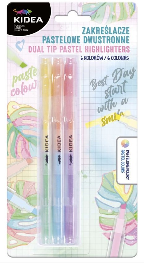 Zakreślacze Pastelowe 6szt. Dwustronne /Kidea