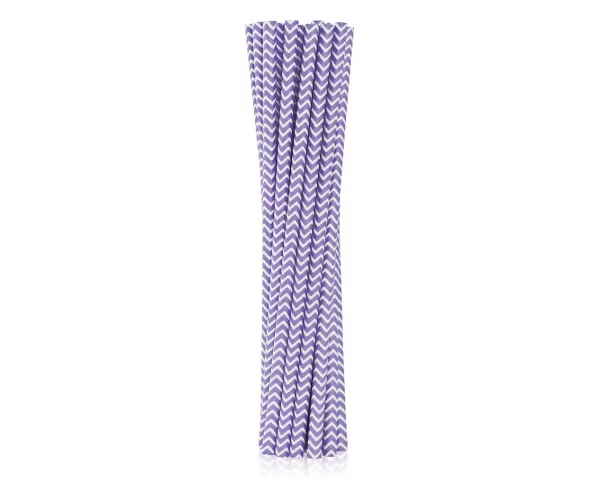 Rurki (słomki) pap. liliowe szlaczki, 6x197mm / 12 szt. /GoDan