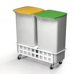 Zestaw Dwóch Szarych Pojemników Durabin 40 Litrowych z Pokrywami (Zielony i Żółty) + Wózek /Durable 1809816050